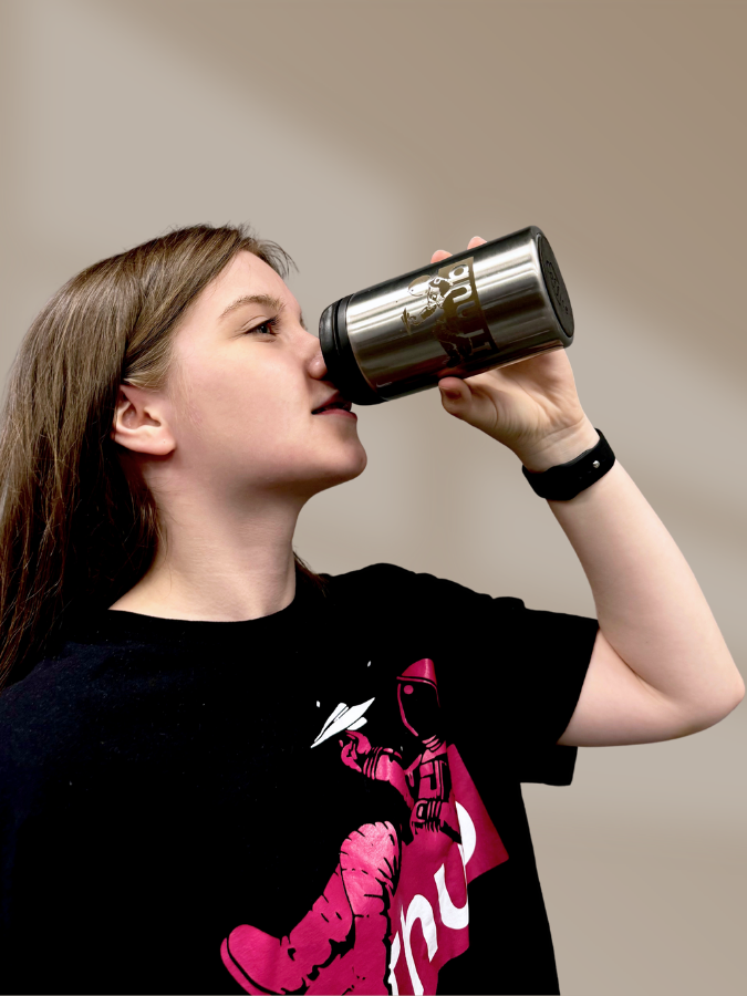 Герметичная завинчивающаяся крышка с откидным клапаном для питья не даст напитку пролиться в дороге.